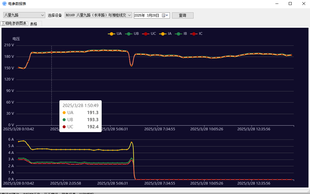 - 6個電流數據采集端口,分別是三相總電流,三支路電流